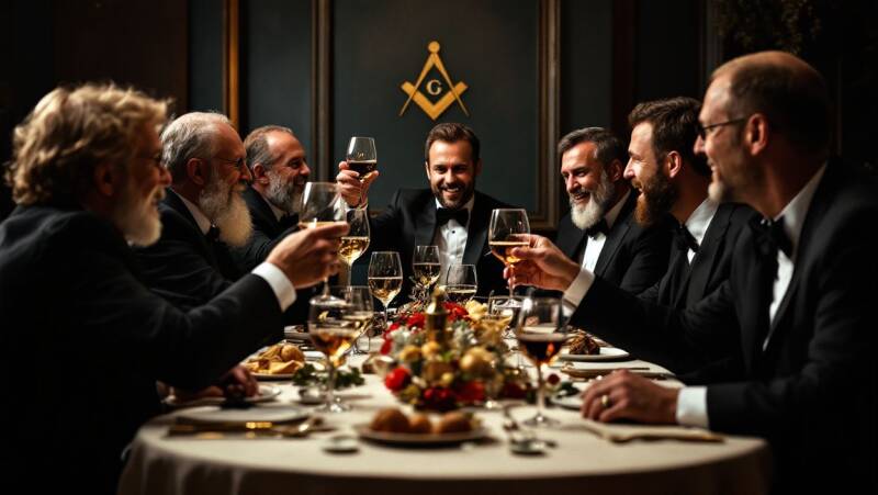 After the Lodge meeting, members gather for a Festive Board: a formal dinner where they socialise and enjoy fellowship. A dedicated toast is made by members of the Lodge to celebrate the occasion.